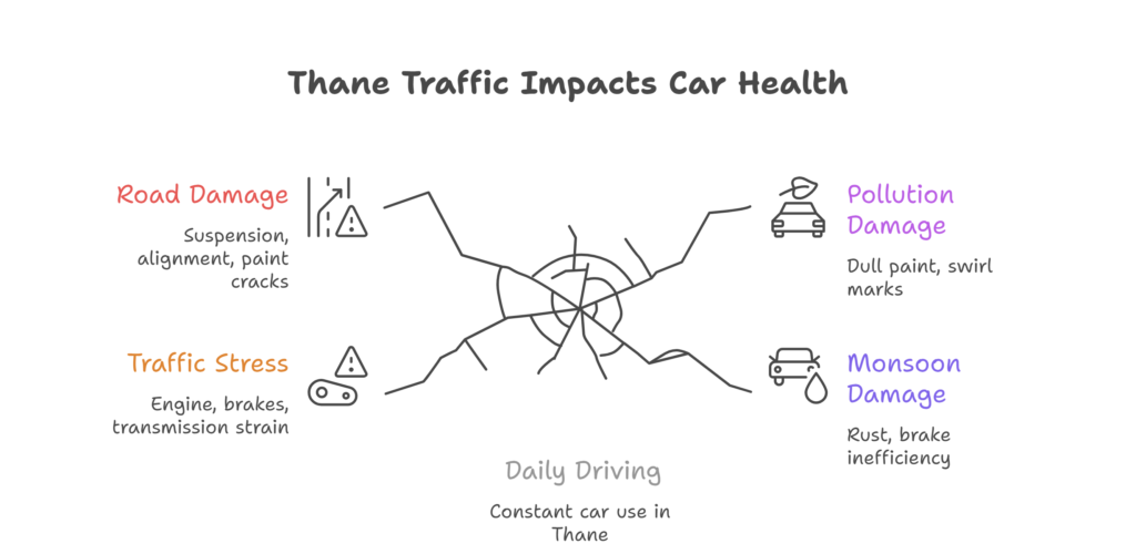 If you live in Thane and use your car every day, you probably don’t think twice about traffic jams, uneven roads, or squeezing through tight lanes. It all feels normal. But your car feels every bit of it—and over time, that daily stress quietly takes a toll.